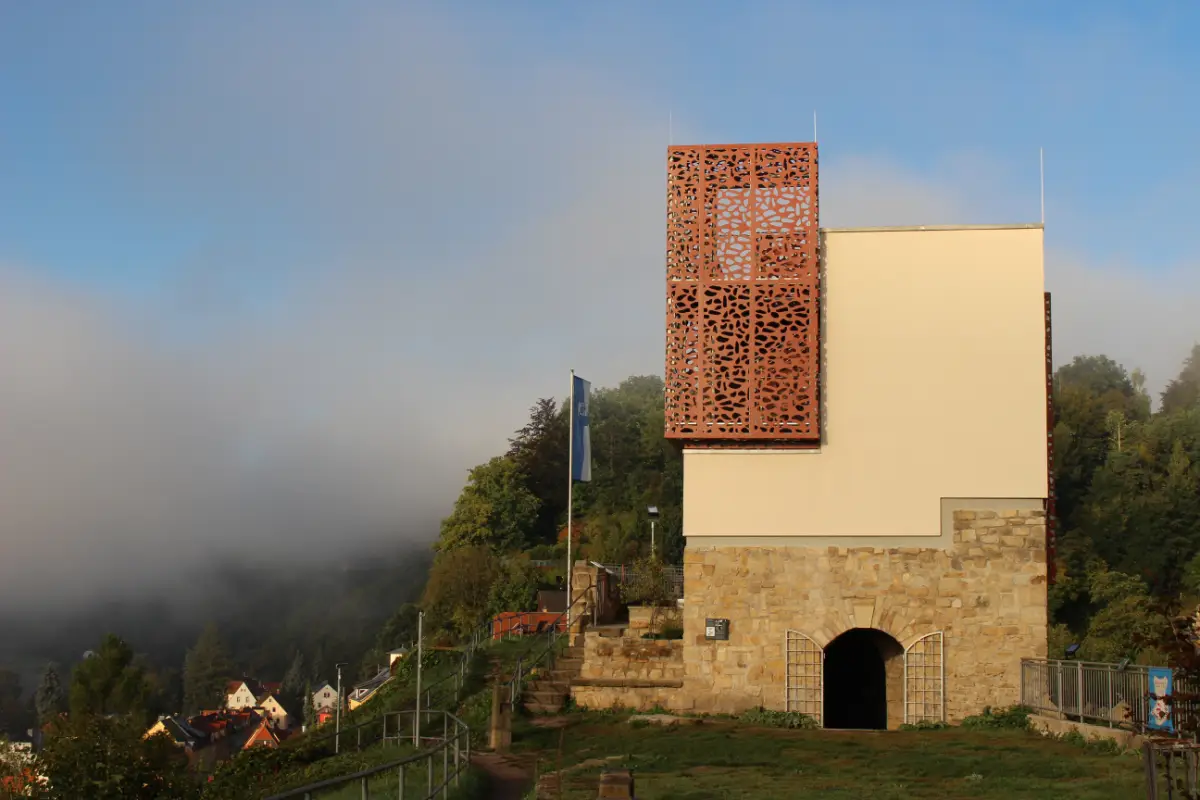 Der neue Aussichtsturm auf alten Mauern entstand in den Jahren 2023-25, auch historische Gewölbe sind wieder freigelegt und bei öffentlichen Führungen (nach Voranmeldung) erlebbar.